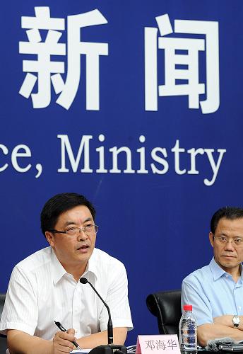 8月13日,衛(wèi)生部新聞發(fā)言人鄧海華(左)在回答記者提問。8月13日,在衛(wèi)生部舉行的例行新聞發(fā)布會上,衛(wèi)生部食品安全與衛(wèi)生監(jiān)督局局長蘇志介紹,《預包裝食品營養(yǎng)標簽通則》將于2013年1月1日正式施行,這標志著我國全面推行食品營養(yǎng)標簽管理制度,對指導公眾合理選擇食品,促進膳食營養(yǎng)平衡,降低慢性非傳染性疾病風險具有重要意義。新華社記者 何俊昌 攝